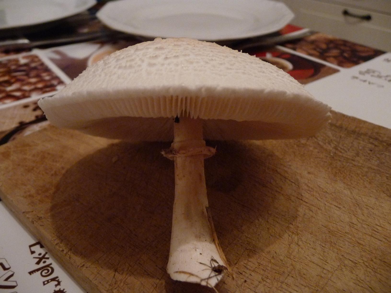 Erst hielt ich ihn für einen Cahampignon, aber da er weiße Lamellen hat denke ich seidiger Egerlingsschirmling? Wenn da nicht die Verwechslung mit den weißen Knollenblätterpilz wäre. Wächst übrigens auf einer Wiese bei unserem Haus.