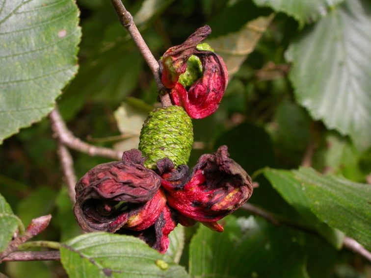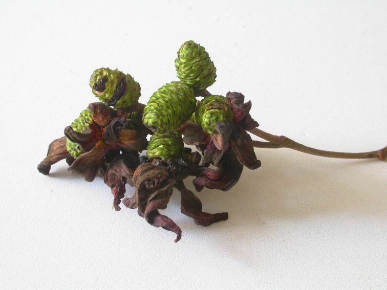 Eine rotblühende Erle? Übervoll! Jedes Zäpfchen war besetzt.