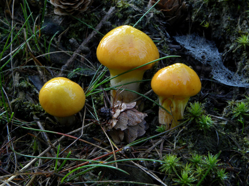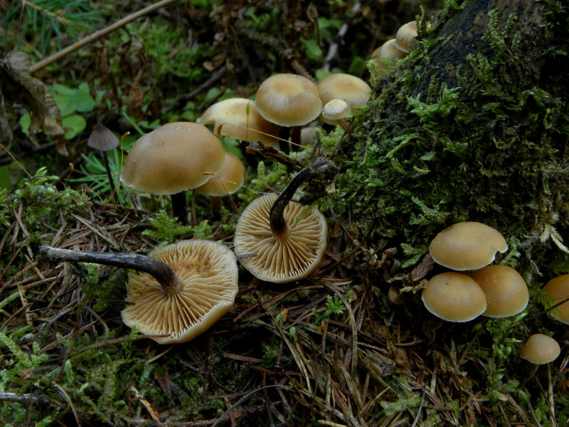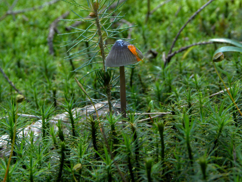 Ein Helmling, für Mycena crocata allerdings eigentlich zu dunkel. Ein paar Trichterlinge, die wir hier noch nicht gefunden haben: