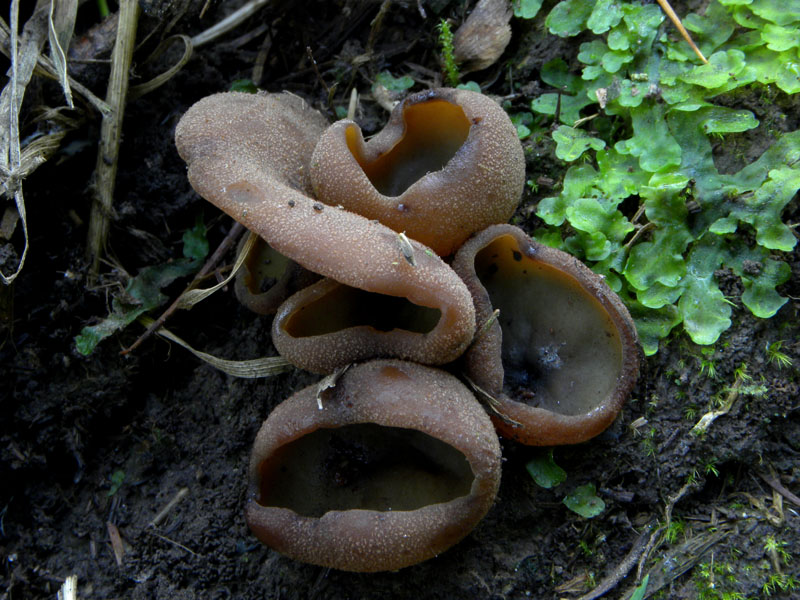 Ohne bisher drübergeschaut zu haben, denken wir, daß es sich um Peziza limnaea handeln könnte. Ein paar Raufüße: