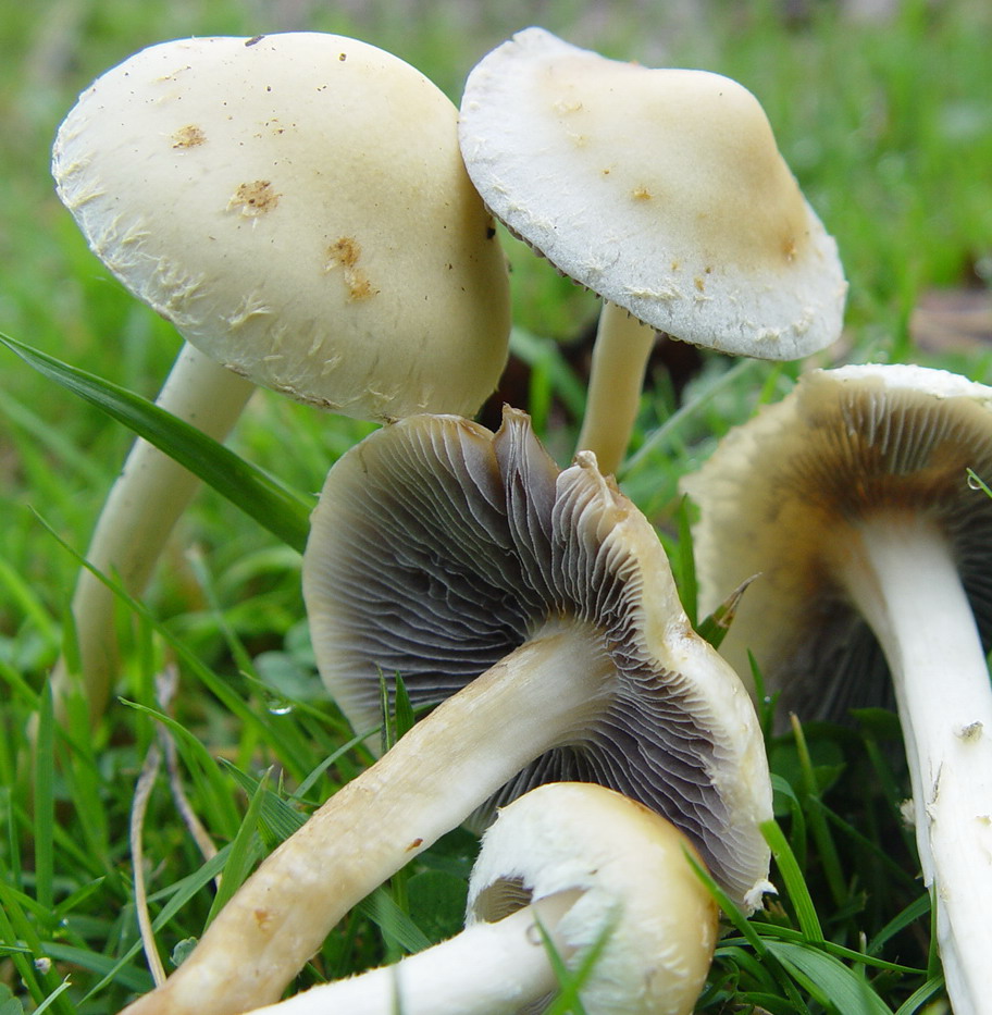 Die gefundenen Pilze sehen nun deutlich wie Stropharia aus und haben Hüte von 30 - 50 mm D.