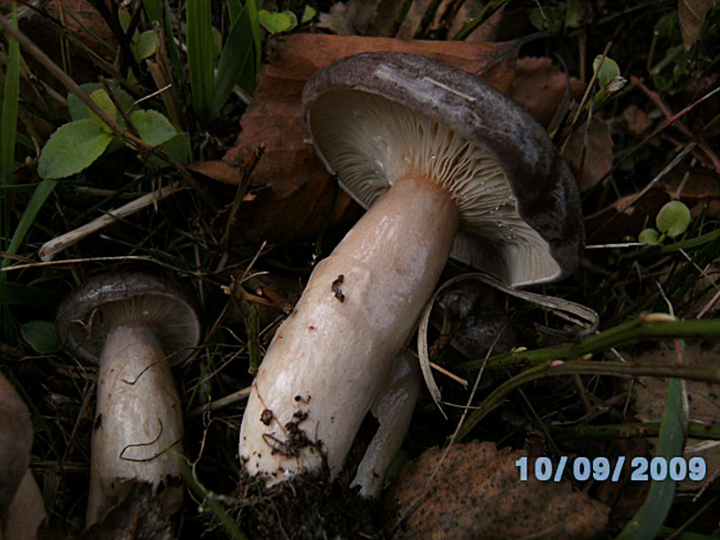 Die Birkenwiese beherbergte neben Großmengen an überständigen Raufüßen, Fliegenpilzen, Gelbblättrigen Ritterlingen, Braunvioletten Dickfüßen und gelben Knollenblätterpilzen auch noch ein paar nicht alltägliche Arten. Hier zum Beispiel der Nordische Milchling, der sich durch den dickschleimig überzogenen Hut und Stiel und die auf den Lamellen graugrün eintrocknende Milch zu erkennen gab.