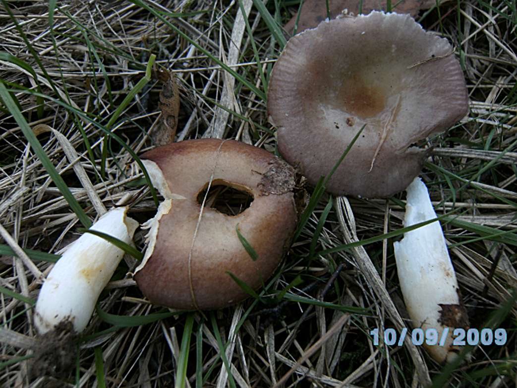 Ziemlich schön auch dieser Täubling, den ich aufgrund des ockerfarbigen Sporenpulvers bei den Tenellae sehe, und der mit seinen gelbbraunen Stielverfärbungen eventuell Russula versicolor sein könnte.