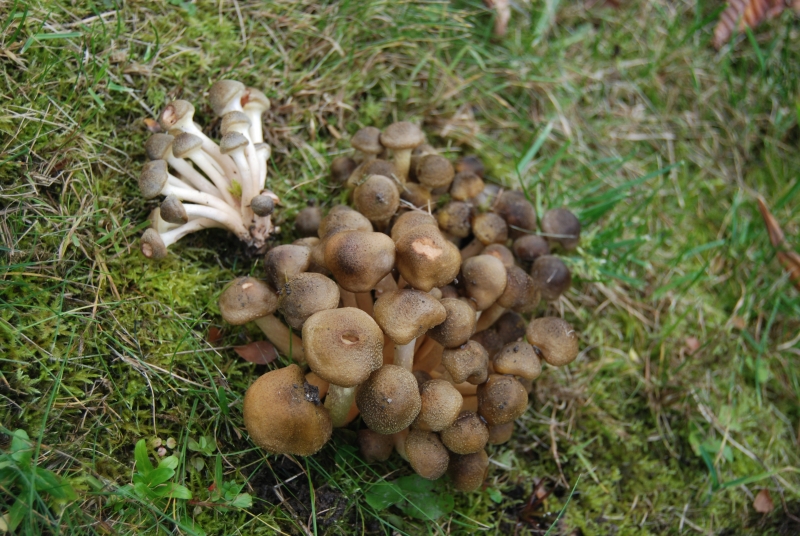 Aber nun : Vor meinem Haus - ehemals Walnußbaum-Grundstück - sprießt alljährlich dieser Pilz. Hat wohl gewisse Ähnlichkeit mit dem Hallimasch.