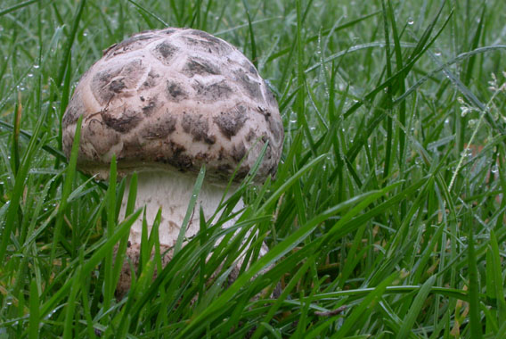 Bei diesem hier, dachten wir an den gemeinen Weichritterling (Melanoleuca melaleuca)