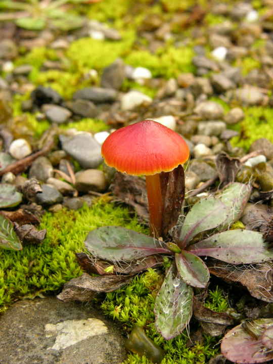 Bodengrund ist Kies und Sand, der Pilz frei stehend,