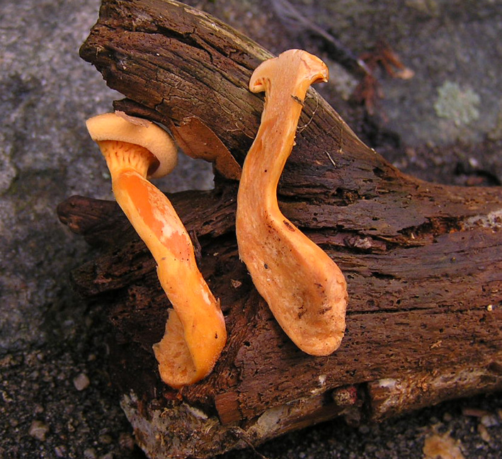 Ich halte das für den Ölbaumpilz / Omphalotus olearius. Wie ist eure Meinung dazu? Wenn ja, wäre es möglicherweise ein Erstfund für den Odenwald. Am Dienstag, bei einem Kurztrip in die Pfalz, habe ich auf dem Donnersberg diesen Pilz gefunden, der mir einiges Kopfzerbrechen bereitet hat: