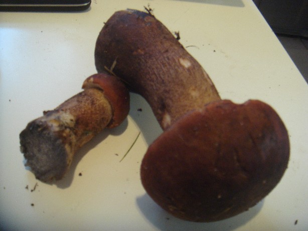 Hallo ihr lieben Pilzexperten, wir waren heute im Wald und haben Braunkappen gefunden. Zu Hause stellte ich dann fest, dass 2 dem Maronenröhrling zwar ähnlich sehen, aber scheinbar doch keine sind. Der Hut ist etwas rötlicher.. erinnert an die Farbe von Kastanien, die Röhren sind cremeweiss und der Stiel hat fast die gleiche Farbe wie der Hut und ist netzartig überzogen. Wenn man den Stiel anschneidet bläut er nach ein paar Minuten fast ins violette! Ich habe mal ein Foto gemacht, vielleicht weiss ja einer von Euch, was das ist. Vielen Dank im voraus und liebe Grüße Nina