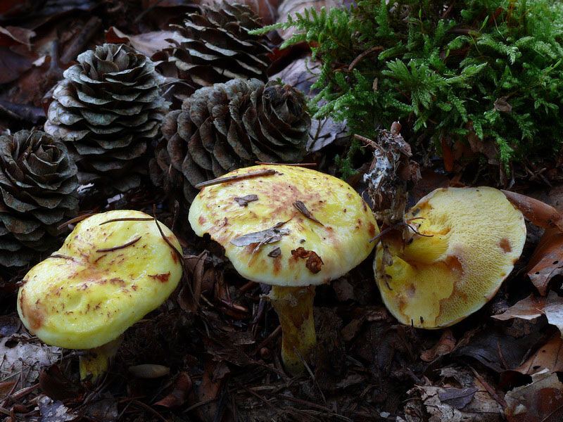 Hallo zusammen, anbei zwei Bilder von Röhrlingen, die etwas ungewöhnlich aussahen. Das erste Bild zeigt Goldröhrlinge aus dem Siegerland, die sehr klein, dafür aber leuchtend gelb waren. Das zweite Bild zeigt einen Filzröhrling, der leichte Grünverfärbungen aufweist. Vielleicht jat jemand schon mal ähnliche Funde gemacht?