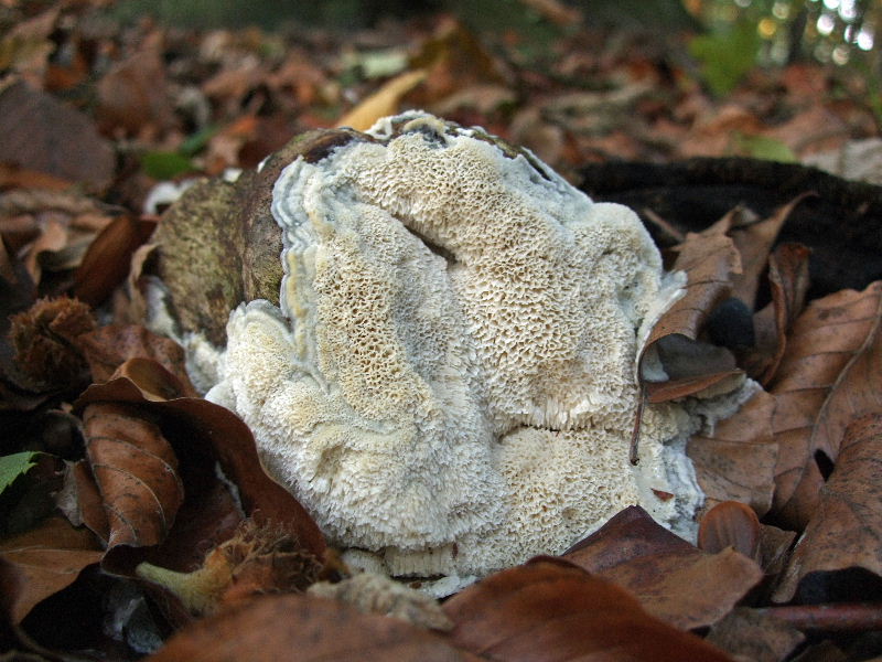 Hallo zusammen, mehrfach habe ich jetzt versucht, diesen hübschen und ca. männerfaustgroßen Porling einzugrenzen. Die Großpilze BaWü Bd.1 habe ich einige Male bei den Porlingen durchforstet, aber zu viele Gattungen gefunden, die passen könnten. Aus makroskopischer Sicht strecke ich deswegen die Waffen :) Vielleicht hat ja jemand von Euch einen Erfahrungsvorschlag, wo das Ex. einzuordnen ist. Geruch war für meine Nase unbedeutend, spontane Verfärbungen auf Druck waren nicht erkennbar, er durfte noch weiterwachsen und ist auf einen weiteren Besuch vorbereitet (wenn nötig). Deutschland, Niedersachsen, Höver/Gaim bei Hannover, 80 msm, Buchenwald, auf freiliegender und entrindeter Wurzel einer Buche, umliegendes Substrat wurde zum Teil überwachsen, 20 Oktober 2009. Viele Grüße,