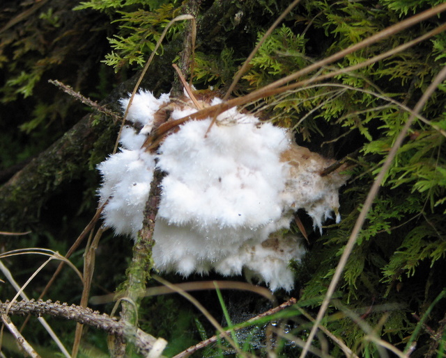 Es ist etwa faustgroß und sieht aus wie ein Knäuel weise feinste Glaswolle. Dicht daneben waren noch 2 hühnereigroße Knäuel.