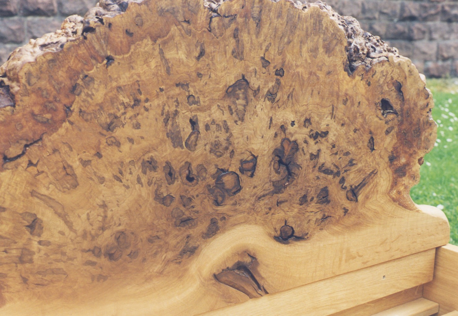 Hallo Kattugla, so ne Wespe meinte ich nicht, sondern so eine die ihre Eier z.B. in ein Buchenblatt setzt, spritzt, bohrt ... wie auch immer und dann eine Wucherung mit der Larve drin entsteht. Wenn ich jetzt wieder mal am Klugscheißen war bitte nicht dran stören, bin leider so veranlagt. :-/ Wenn Du so ne Maserknolle meinst, dann hat die schon Löcher aber nicht so viele und in anderer Form. Hier ein Eichenkrebs als Kopfteil zu meinem Bett. (sorry für das große Foto, war grad zu faul zum verkleinern) Gruß Joschi