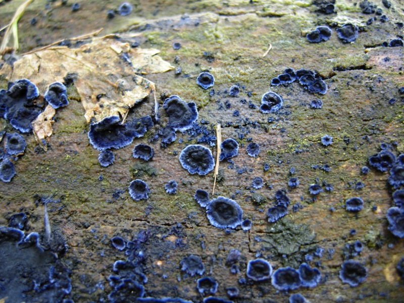 hallo könnte das der blaue rindenpilz, der pilz des jahres 2009, sein, oder gibts da auch noch zehn ähnliche blaue? täte mich ja nicht wundern. auf den bildern vom blauen rindenpilz die ich gefunden habe war er immer flächiger und meist viel blauer, keine so einzelnen fruchtkörper wie der hier. vielleicht wächst er auch noch zusammen und wird noch blauer, wer weis. ach ja, wächst auf altem stamm von esskastanie, falls das wichtig ist. mfg schdaipilz