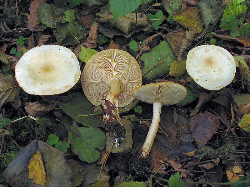 Oje, ich bin zu dusselig dazu. Im Wald wars ein Weichritterling für mich, zuhause habe ich dann erst einen Ritterling daraus gemacht. Nochmaliges Mikroskopieren brachte leicht ornamentierte Sporen (meinte ich gesehen zu haben) mit ca. 6,1 µ Länge und keine Zystiden. Dann bin ich irgendwie auf Melanoleuca melaleuca (nach Gröger) gekommen. Bei Horak kommt M. kavinae heraus. Mit dem Bon-Schlüssel kommt wieder was ganz anderes heraus.
