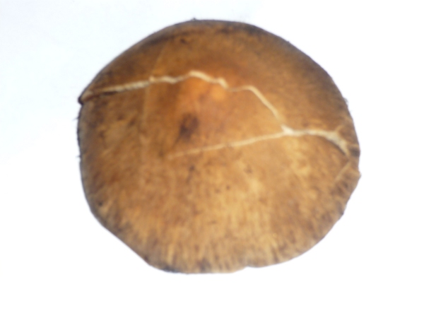 Der Pilz, den ich gepflückt und analysiert habe ist ca. 6 cm im Durchmesser und ist sehr stabil (bricht schwer). Die Farbe ist ein tiefes seidiges Braun.