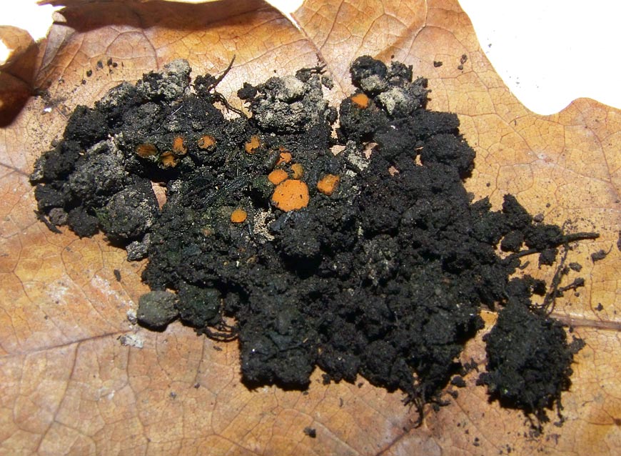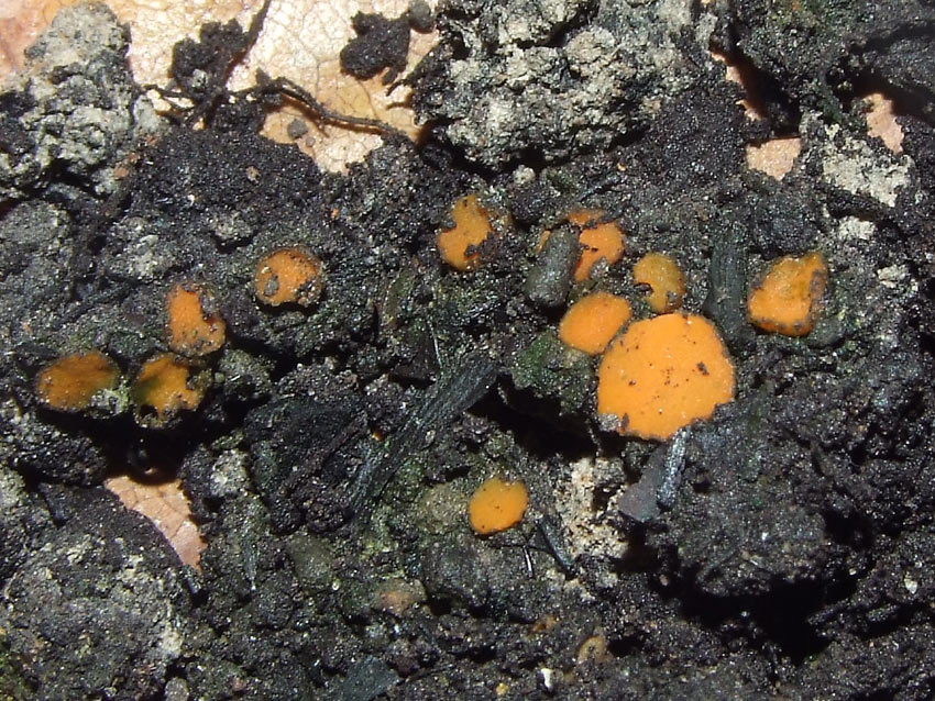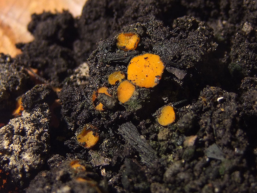 Hier habe ich noch einen kleinen Becher von der Brandstelle: A: max 4mm groß, blaß orange, direkt auf dem Erdboden, Brandstelle,