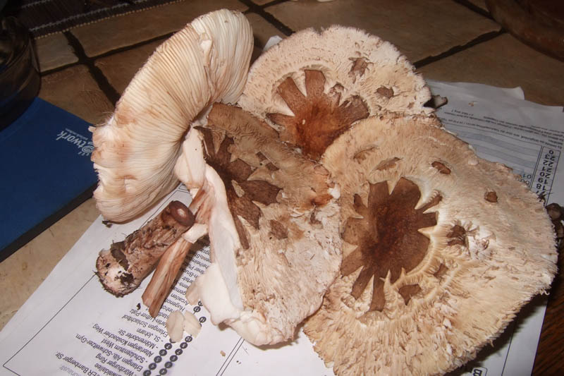 welche Schirmlinge sind das? Ich bin mir nicht sicher, weil sie schlecht riechen. Der Stiel hat keine Schuppen, Stielring ist locker. Auf der Huthaut ist deutlich eine blumenartige, braune Fläche zu sehen.
