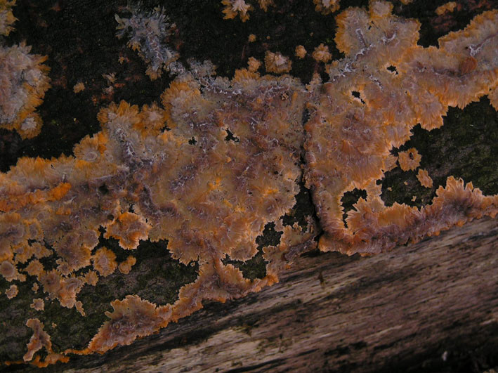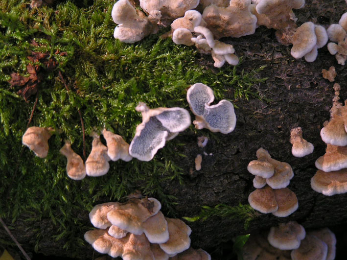 Am gleichen Stamm auch der Orangerote Kammpilz / Phlebia radiata, alte Austernseitlinge und einiges mehr.
