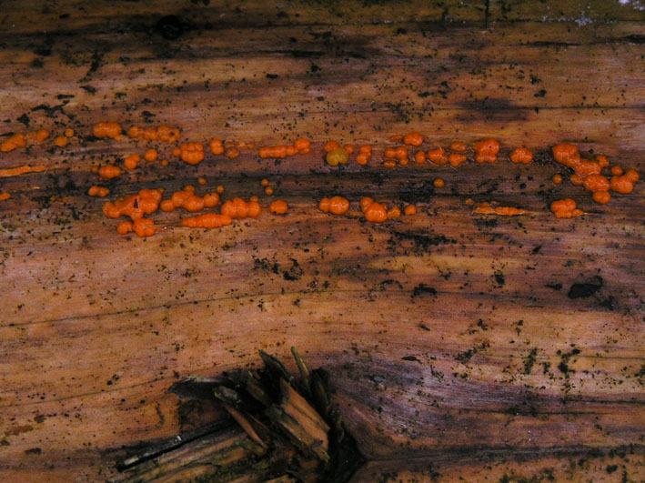 An einem Buchenstamm die Zerfließende Gallertträne / Dacrymices stillatus
