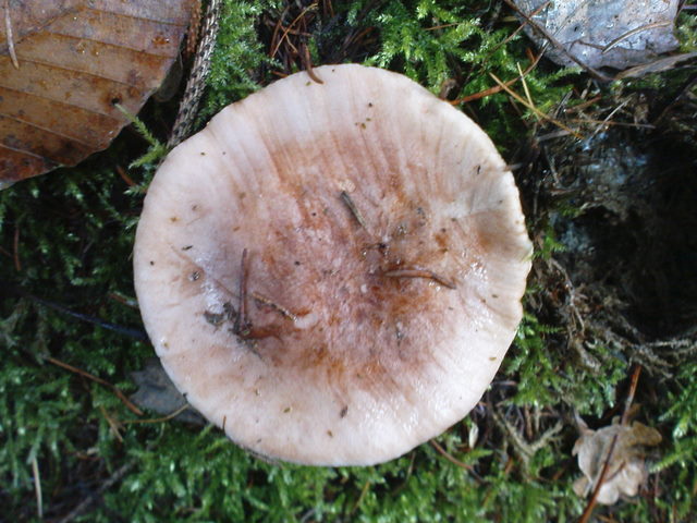 Hallo ans Forum, bei diesem Tricholoma-Fund komm ich irgendwie nicht klar - Geruch und Statur lassen mich an T. stiparophyllum denken, aber kann der so dunkel werden? Zum Standort: leicht saurer Lehmboden im Fichtenforst, eingestreute Pappeln, Lärchen, Buchen, Eichen und Birken, ziemlich feucht und eher nährstoffreich. Zum Pilz: Höhe 12 cm, Hut-Durchmesser 12 cm, Stielfleisch sehr kompakt, Fleisch bleibend weiß, Geruch abartig (deutlich strenger als bei T. lascivum, aber mit ähnlichen Komponenten). Lamellen- und Schnittbild folgen. Erkennt jemand den Burschen? Über Hinweise und Bestimmungshilfe würde ich mich freuen. Schöne Grüße,