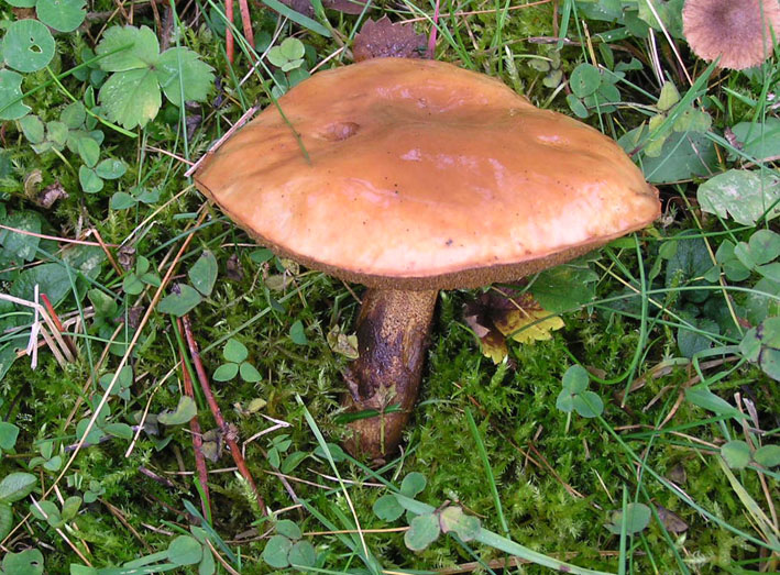 Im Vorgarten sind auch noch ein paar überständige Butterpilze / Siullus luteus. Davon gab es im ganzen Garten höchstens 20 und die meisten davon wurden gegessen.