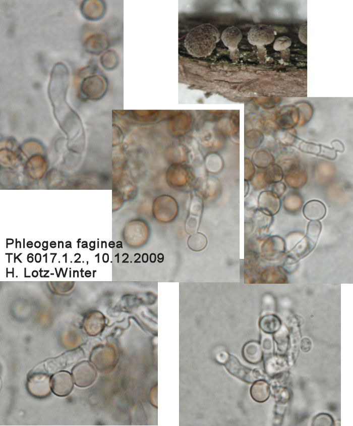 : Hallo allerseits, es beruhigt mich, dass ich offenbar nicht der einzige mikromäßig überraschte Mensch war. Für mich war das der persönliche Erstfund von Phleogena faginea im Rhein-Main-Gebiet am Rand des NSG Mönchbruch, also wieder im Auge des Hurricans sozusagen. Ich habe wirklich einige Zeit gebraucht, bis ich diese auch für mich zunächst wie Konidiophore aussehenden Strukturen als Basidien zuordnen konnte. Übrigens gibt es einen schönen Artikel zu P. faginea in den Westfälischen Pilzbriefen
