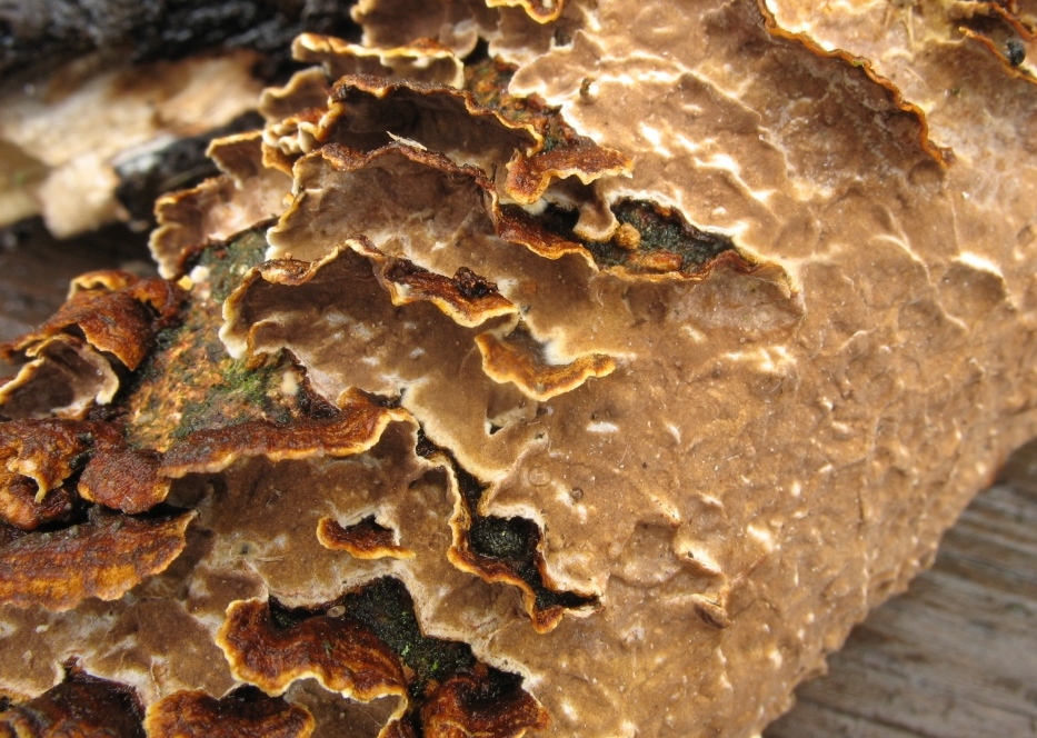 Hallo Ingo und Schnuffel, ihr habt die Art natürlich zum Schluss richtig geraten. Es ist Hymenochaete bzw. Pseudochaete tabacina, der tabakbraune Borstenscheibling. Ein eher etwas seltenerer Weidenbewohner.