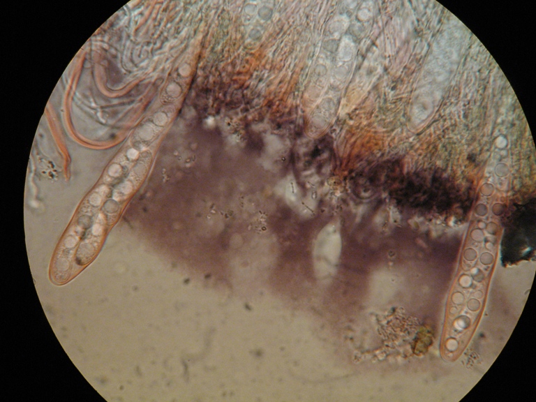 das ist ja ansteckend, was Ihr da macht :-) Bei meinem heutigen Propolomyces-Fund hat sich auch mit Kongo-SDS eine Lilafärbung über der Fruchtschicht ergeben. Anbei ein Querschnitt.