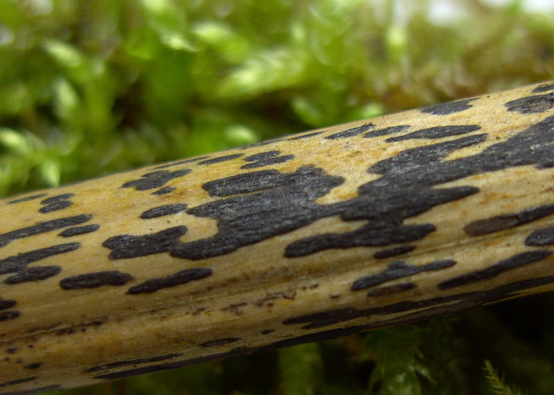 Hallo Pilzfreunde, hier die Auflösung: Die Sporen stammen von Rhopographus filicinus, dem Adlerfarn-Rindenpilz.