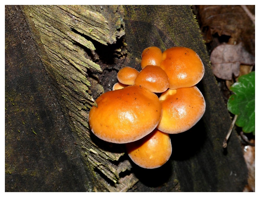 Hallo Pilzspezialisten, ich habe auf einer winterlichen Fototour an einem am Boden liegenden Holzstamm einen gelborangen Pilz entdeckt den ich bisher mit meinem Pilzbuch und zahlreichen Internetfotos nicht wirklich bestimmen konnte. Es könnte sich um einen Samtfussrübling (Flammulina velutipes) handeln da er einer der wenigen im Winter wachsenden Pilze ist. Er wächst zwischen November und März in Büscheln auf Holzstämmen und Stümpfen von Laubbäumen, seltener auf Nadelholz.