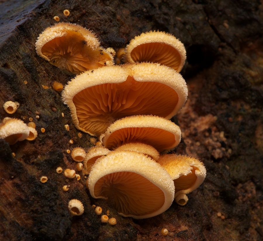 ...und Orangeseitlinge, Phyllotopsis nidulans gabs auch noch.