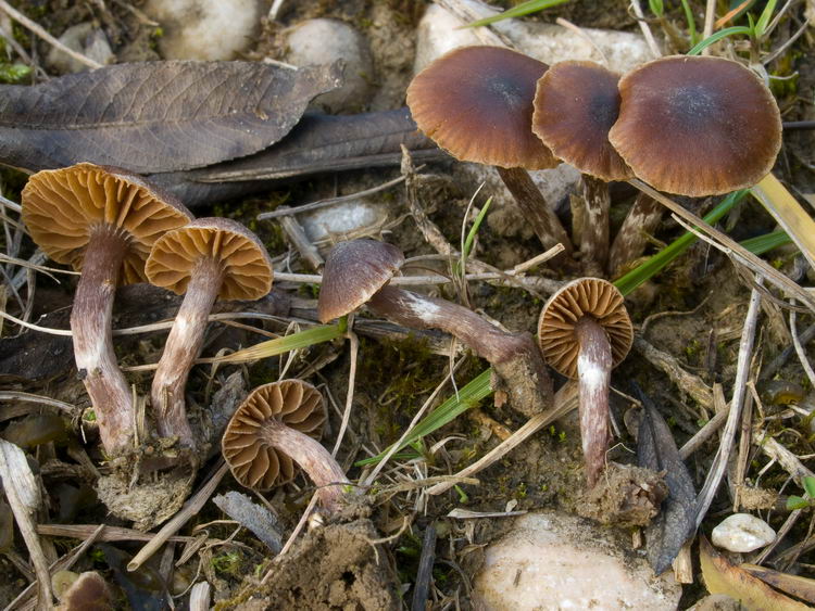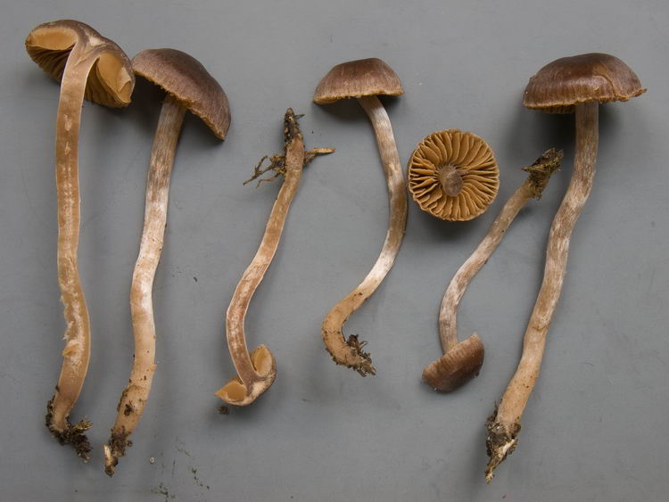 Die folgenden kleinen rotbraunen weichen abgesehen von der Färbung durch schwächeres Velum und längere, subzylindrische Sporen ab. Nach Schüssel ist es Cortinarius diasemospermus var. leptospermus Lindstr., für den es auch den Namen C. tiliaceus gibt: