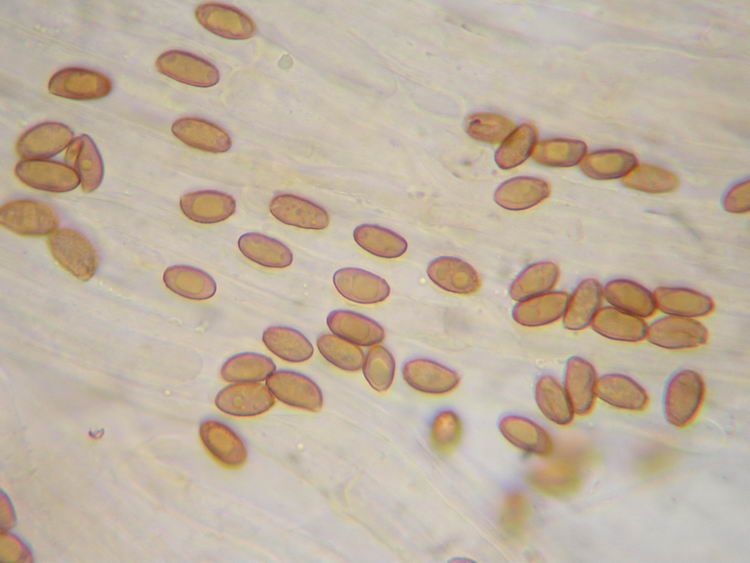 Die Sporen sind schwach warzig, schlanker und am Apex schmäler gerundet als bei C. flexipes/flabellus, dem Duftenden Gürtelfuß: