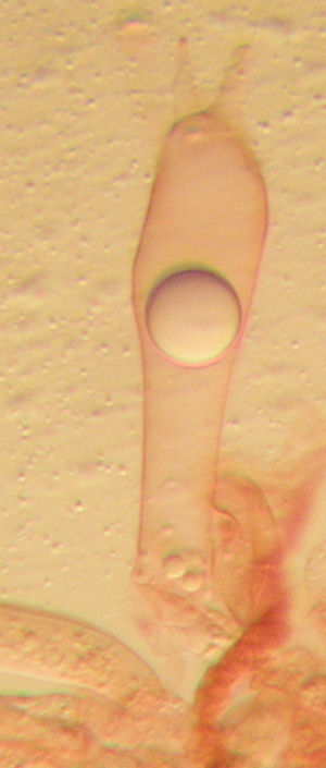 Also, ich habe die "Schablonentechnik" verwendet und das Bild zeigt Oudemansiella mucida 400-fach.