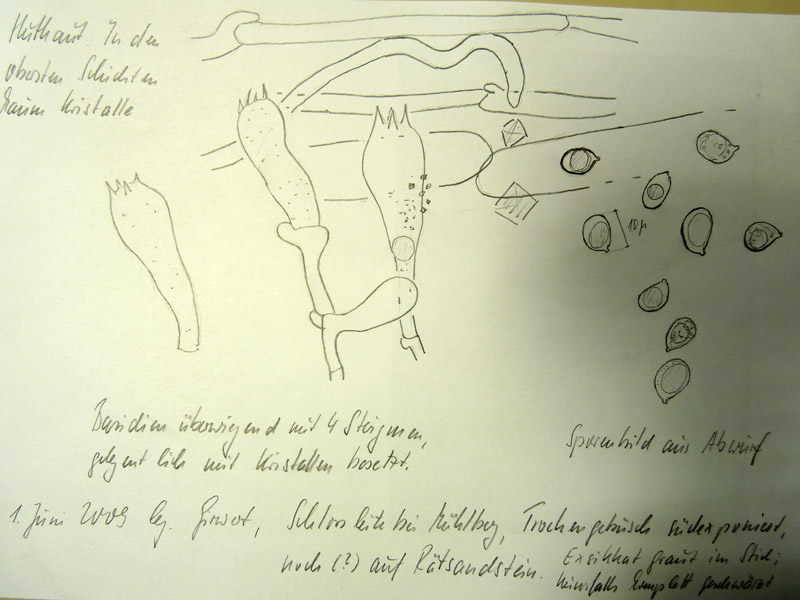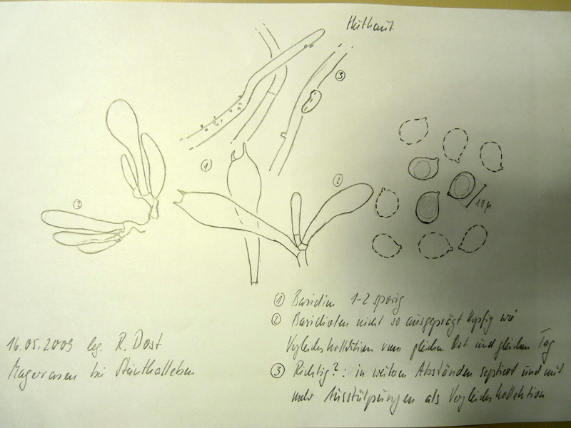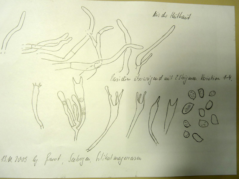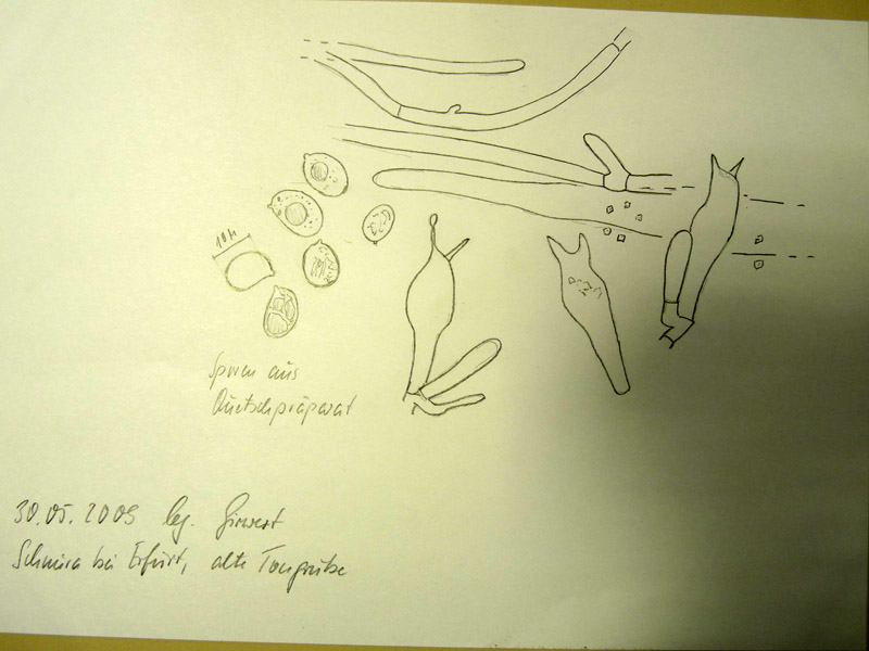 Tja!!? Von einem Silikatmagerrasen. Die Basidien spielen verrückt und entsprechend variiert die Sporengröße.