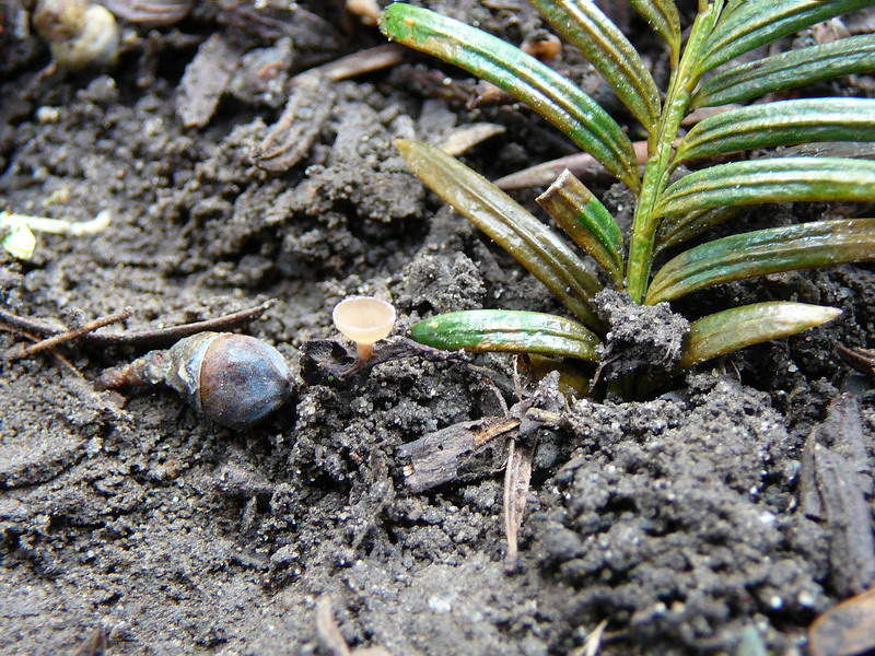 Zumindest stand er auf undefinierbaren Substrat direkt unter der Eibe. Nächster Baum eine Esche, Entfernung ca. 10 meter. Vermutlich doch eine gewöhnliche Ciboria, oder ??