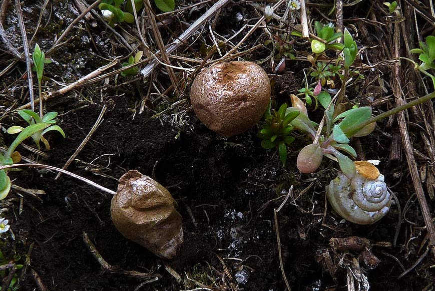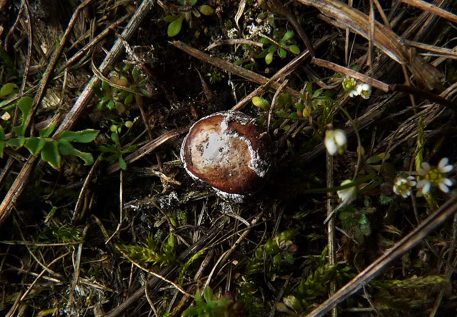 Dennoch konnten neben Geastrum corollinum und T.brumale beide Scheibenboviste begutachtet werden Kleiner Scheibenbovist - Disciseda candida