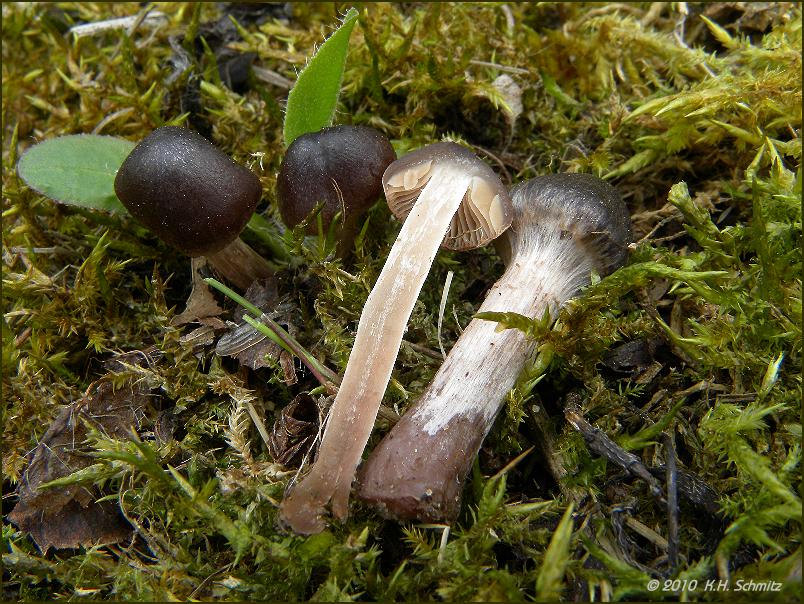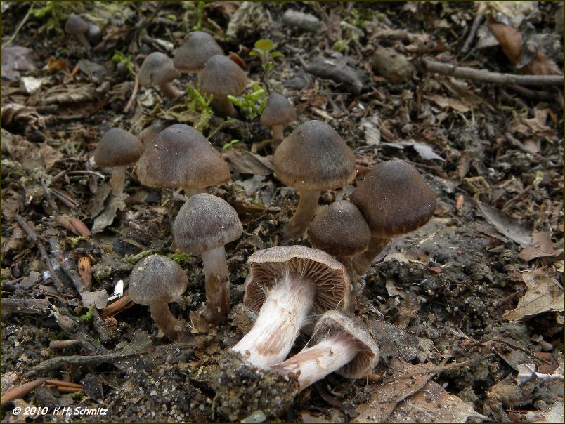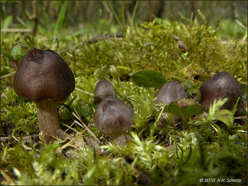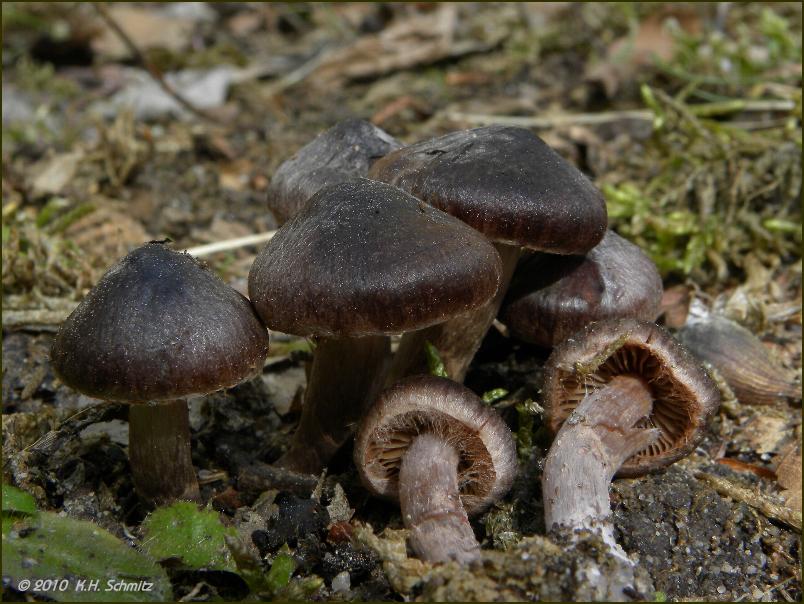 kann ich zu Felix Frühjahrsparade noch beisteuern. Guten Abend liebe Pilzfreunde, ich finde ihn jedes Jahr im Laufe des April in mehreren Fundgebieten. Heute in einem Gebiet 6 Kollektionen (keine Bange, zeige nur 3). Es ist Cortinarius vernus, Rosastieliger Frühlings-Wasserkopf. 1. Kollektion