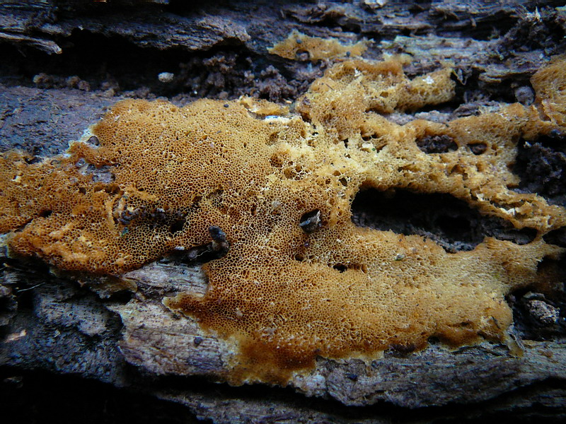 und ein mitgenommenen resupinater Porling auf FAGUS