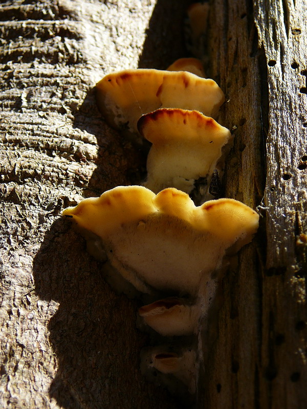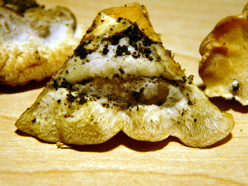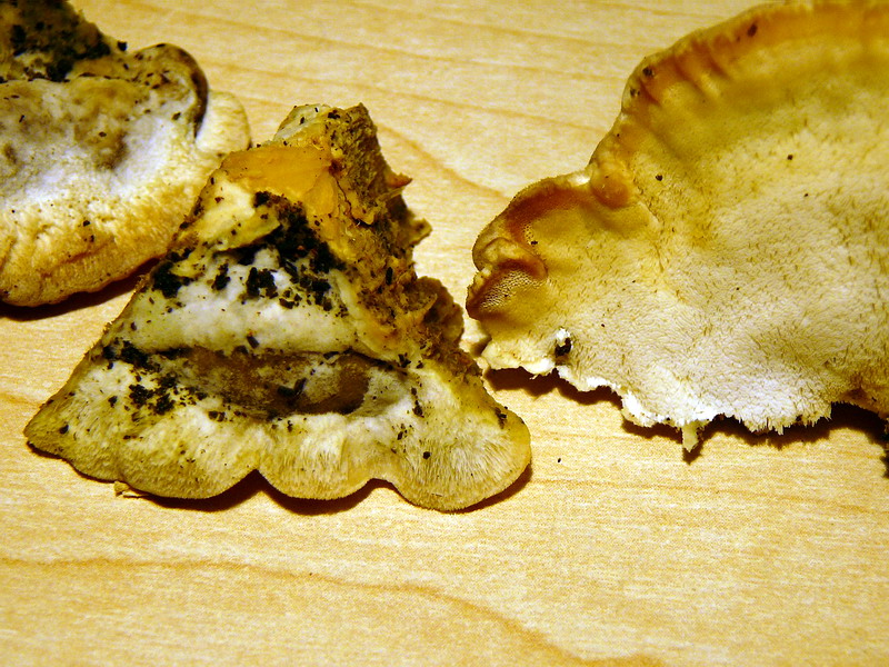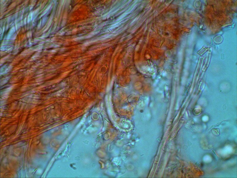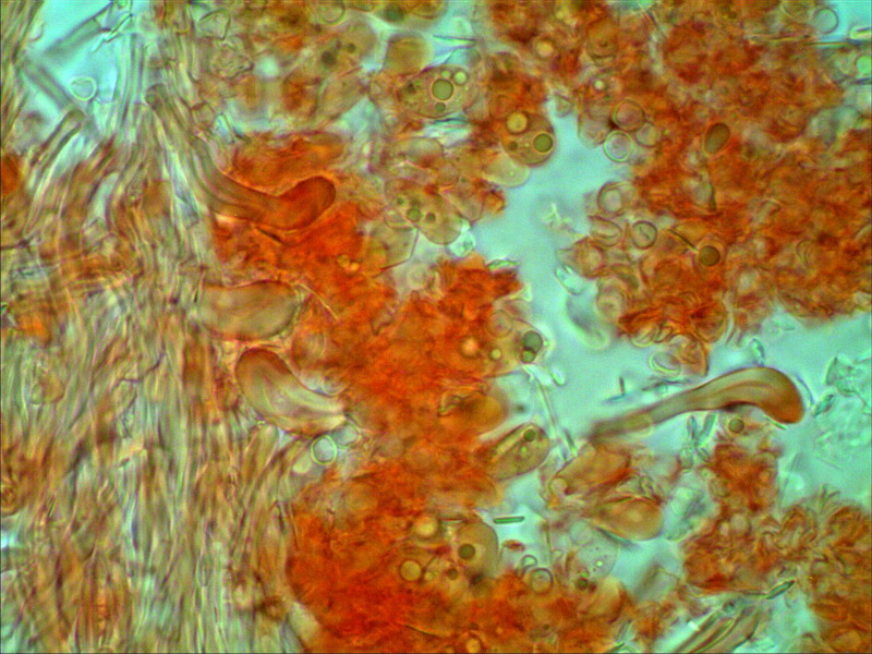 Liebe Pilzfreunde. Diesen Porling hatte ich gestern noch fotografiert und auch mitgenommen. Dann fiel mir die haarige Hutoberfläche auf und begann ihn noch, unters Glas zu legen. Auf Grund der Sporenform fallen ähnliche Trameten und Borstentrameten weg. Wuchs an ACER, naheliegend wären sehr junge Oxyporus populinus. Sind die haarigen Oberflächen dann arttypisch? LG Hartmut
