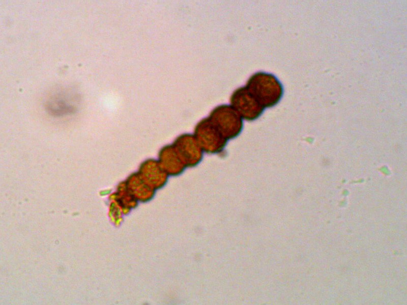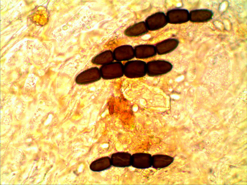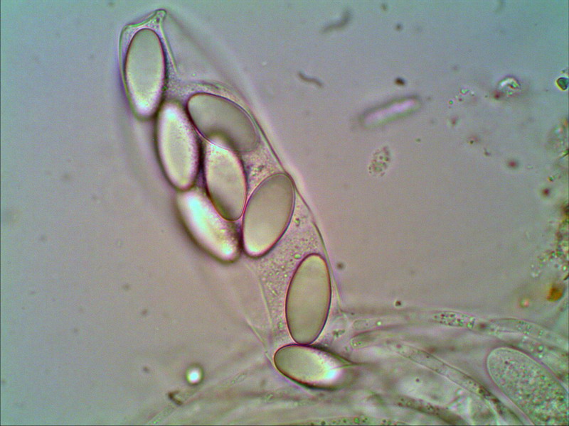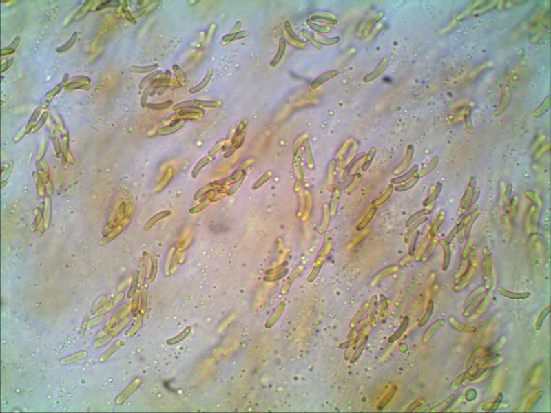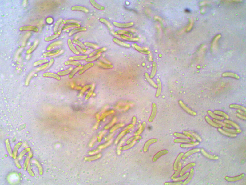 : Exidia thuretiana Hier habe ich vergeblich versucht, Sporen zu finden. Es ist auch mein erster Gallertpilz. Wo "sitzen" denn die Basidien und Sporen denn ? Oben drauf oder in den Windungen innen. Habe nur Hyphen mit Schnellen gesehen. Und zu den Becherlingen auf Reh Murmeln: