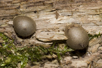 Hallo zusammen, dieses Gebilde fand ich gestern UNTER Totholz in der Nähe eines Gewässers in Südhessen. Normalerweise würde ich es für einen Bovist halten, da es aber auf der unterseite von totholz wuchs, bin ich unsicher.
