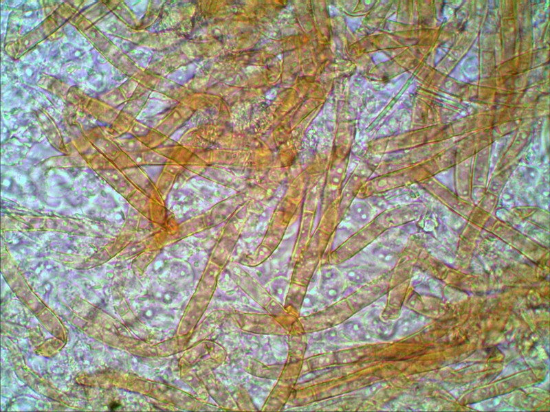 Sporen relativ klein, 6,3 x 2,4 ym J+ (Lugol)