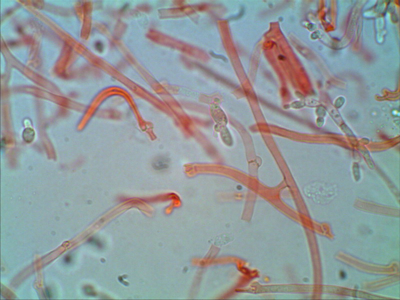 : abgeworfen und in einem Quetschpräparat sind dann auch Basidien und