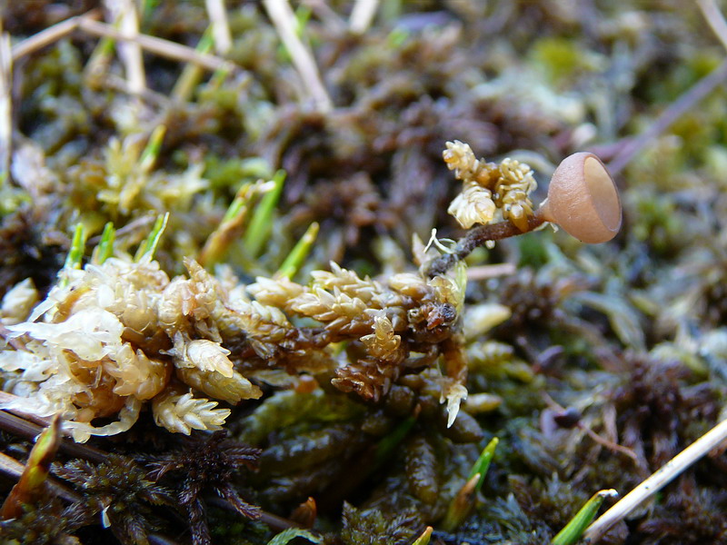 Die Suche nach verfaulten Preiselbeeren als Substrat kann nicht bestätigt werden, aber ringsrum standen einige Büsche. Deshalb denke ich, es handelt sich trotzdem um eine Monilinia spec. Welche Art wächst eigentlich auf mumizierten Preiselbeeren. M. baccarum stehts (?) auf Heidelbeeren?