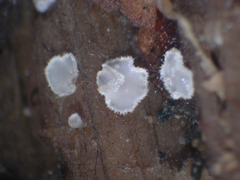 Fichtenstamm drehen war angesagt, Porlingssuche, statt dessen niedliche weiße Becherlinge
