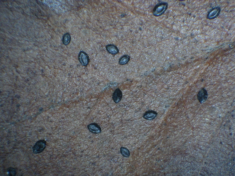 gefunden im ELLIS, nadem FLIEGIE das Blatt bestimmen konnte. Auf das einfachste kommt man nicht, na klar Weißdorn, stand da überall rum. Der Pilz allerdings scheint recht selten zu sein, selbst in der Pilzflora wird er als selten angegeben Lophodermium hysterioides (Pers.) Sacc. (1883), (= Lophodermium foliicola)