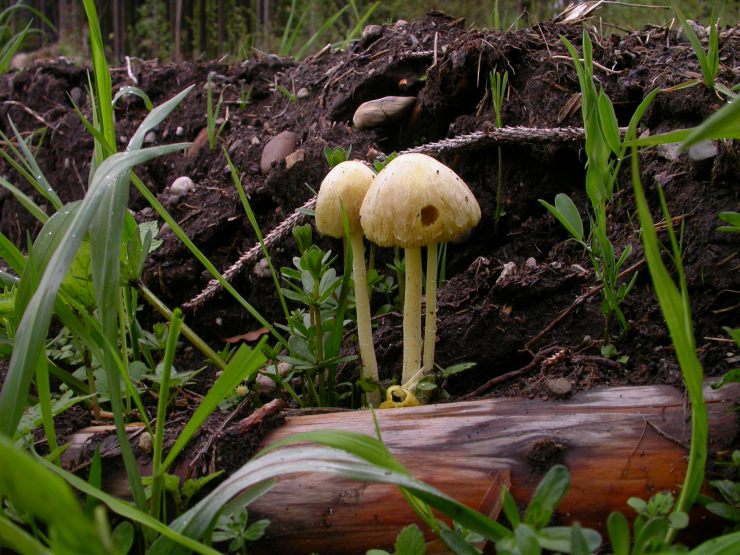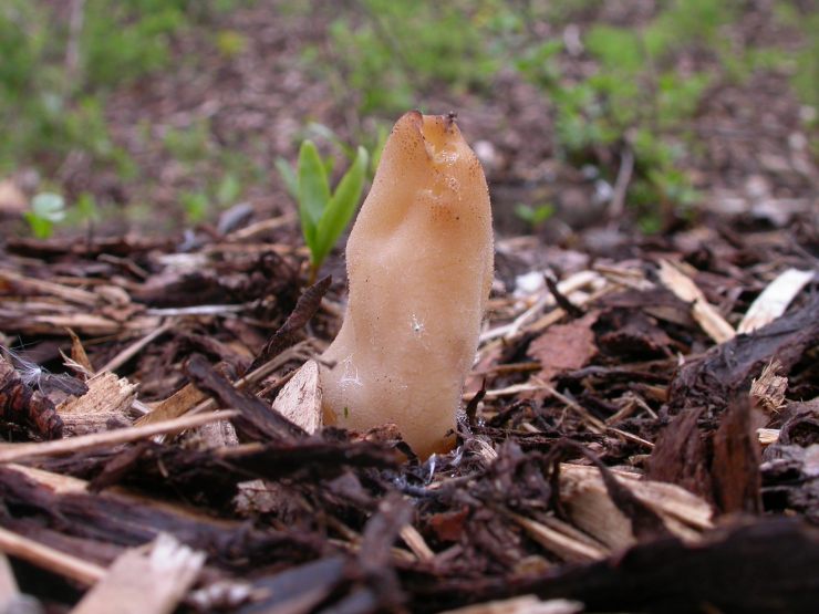 Käppchenmorcheln auf Mulch, denen der Köpfe abgeschnitten wurden