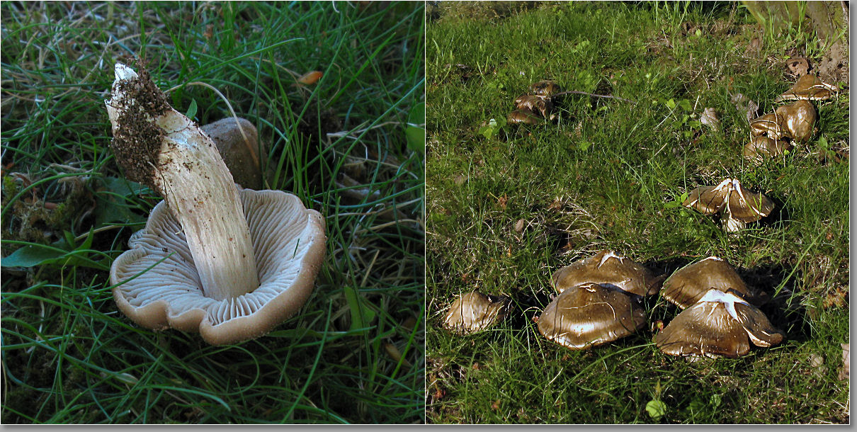 Auffällig für mich war der mehlige Geruch, die gebuckelten, spitzkegeligen und seidig glänzenden Hüte mit olivgrünem Farbstich sowie das längstfaserige Aufreißen an Hut & Stiel. LG, Gábor