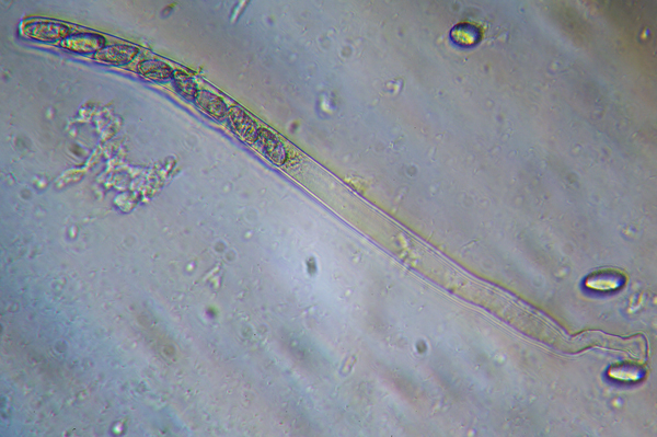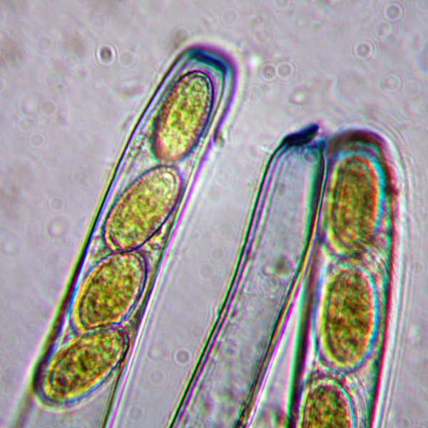 Die Sporen waren 16-19 x 8-10. Das alles würde ganz gut passen zu Pezizia arvernensis. Allerdings bildete ich mir ein, bei einigen Sporen ganz vage 2 Tropfen zu sehen (linkes und mittleres Bild z. B.). Das würde dann wieder nicht passen? Was sagt Ihr? Einen Fund von gestern habe ich noch, aber den muss ich noch ordentlich bearbeiten. Vielleicht später oder morgen. Jetzt gehe ich meinen kranken Rücken in der Sonne entspannen ;-)